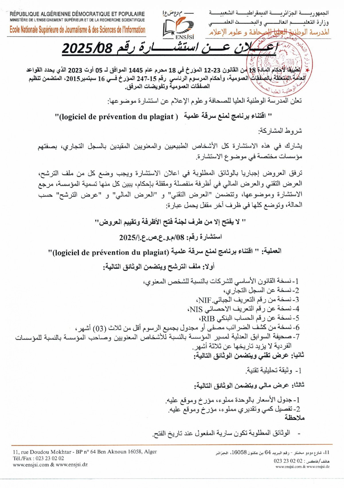 ECOLE NATIONALE SUPÉRIEURE DE JOURNALISME ET DES SCIENCES DE L’INFORMATION
