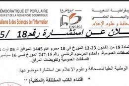 تضع المدرسة الوطنية العليا للصحافة و علوم الاعلام للراغبين في المشاركة في المسابقة الوطنية للالتحاق بالتكوين في الطور الثاني - الماستر- الرابط الخاص بالتسجيلات وفقا للشروط المعلن عنها سابقا وخلال الفترة الممتدة من 01 الى 10 جوان 2025.