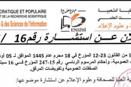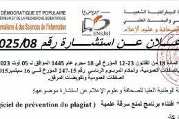 تضع المدرسة الوطنية العليا للصحافة و علوم الاعلام للراغبين في المشاركة في المسابقة الوطنية للالتحاق بالتكوين في الطور الثاني - الماستر- الرابط الخاص بالتسجيلات وفقا للشروط المعلن عنها سابقا وخلال الفترة الممتدة من 01 الى 10 جوان 2025.